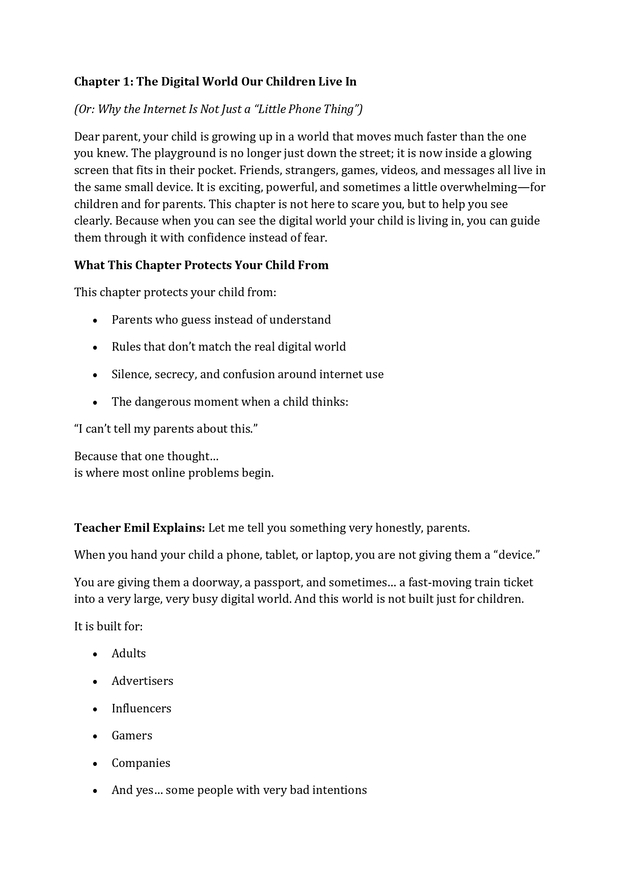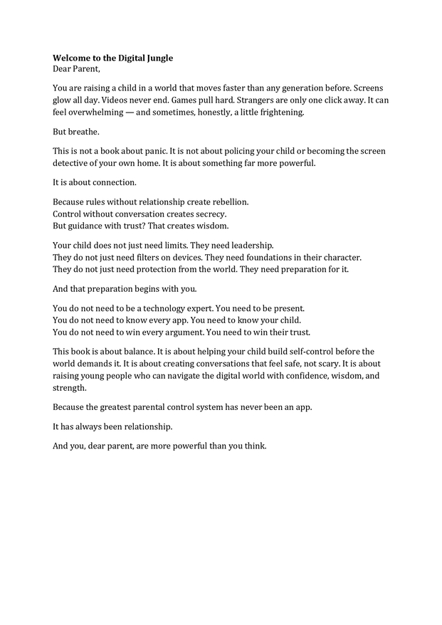 As shared in the opening message, this book is not about fear or control — it is about building trust, communication, and real-world readiness for the digital space .