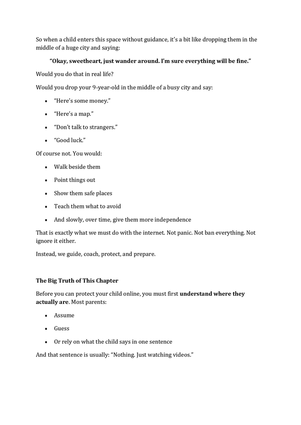 Each chapter walks parents through real situations children face online — not just what can go wrong, but how to respond calmly, wisely, and effectively.